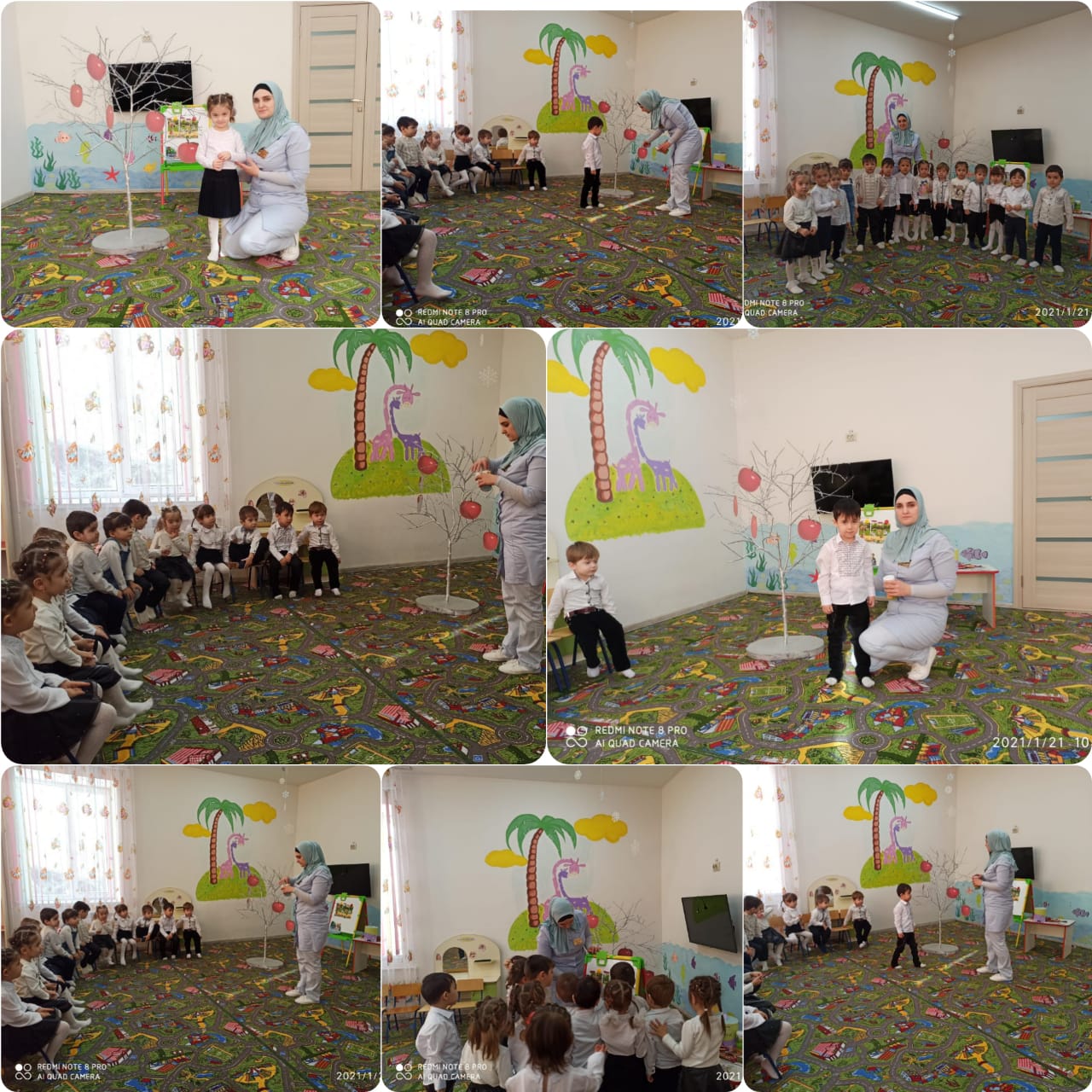 12.01.2021в младшей группе «Радуга» на тему: «Волшебное дерево».Образовательные задачи:- формирование представлений о внешнем виде, образе жизни и повадках диких животных;- уточнение и расширение словаря по теме (медведь, волк, лиса, заяц, белка, ёж);- формирование обобщающего понятия «Дикие животные»;- совершенствование грамматического строя речи: предложно-падежные формы, употребление существительных в форме родительного падежа.Развивающие задачи:- развитие зрительного внимания, памяти, мышления, тонкой и общей моторики, общих речевых навыков (чёткости дикции, интонационной выразительности речи).Воспитательные задачи:- формирование интереса к живой природе, доброжелательности, инициативности, ответственности, навыков сотрудничества.Воспитатель: Салмахаджиева У.Э.