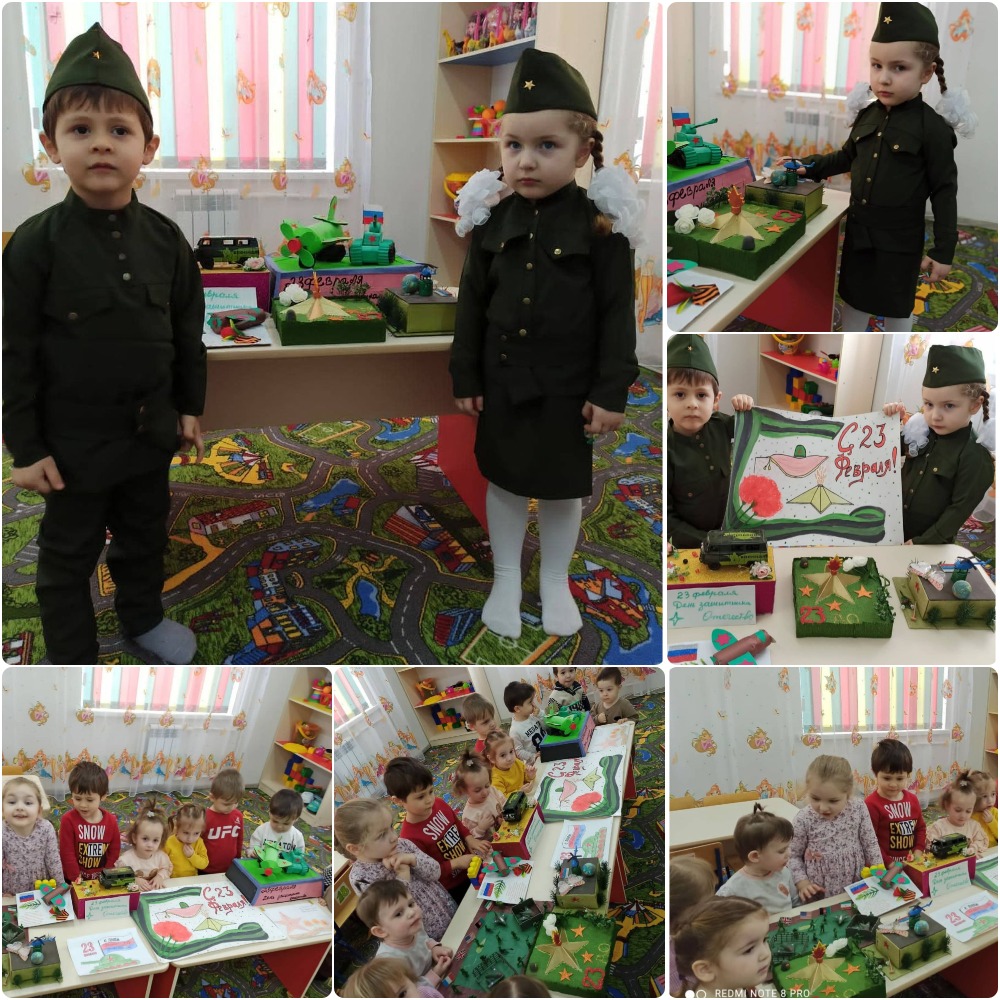 20.02.2021Выставка поделок и рисунков совместного творчества родителей и детей «Мой папа-защитнмк отечества!». Вторая группа раннего возраста «Ангелочки»