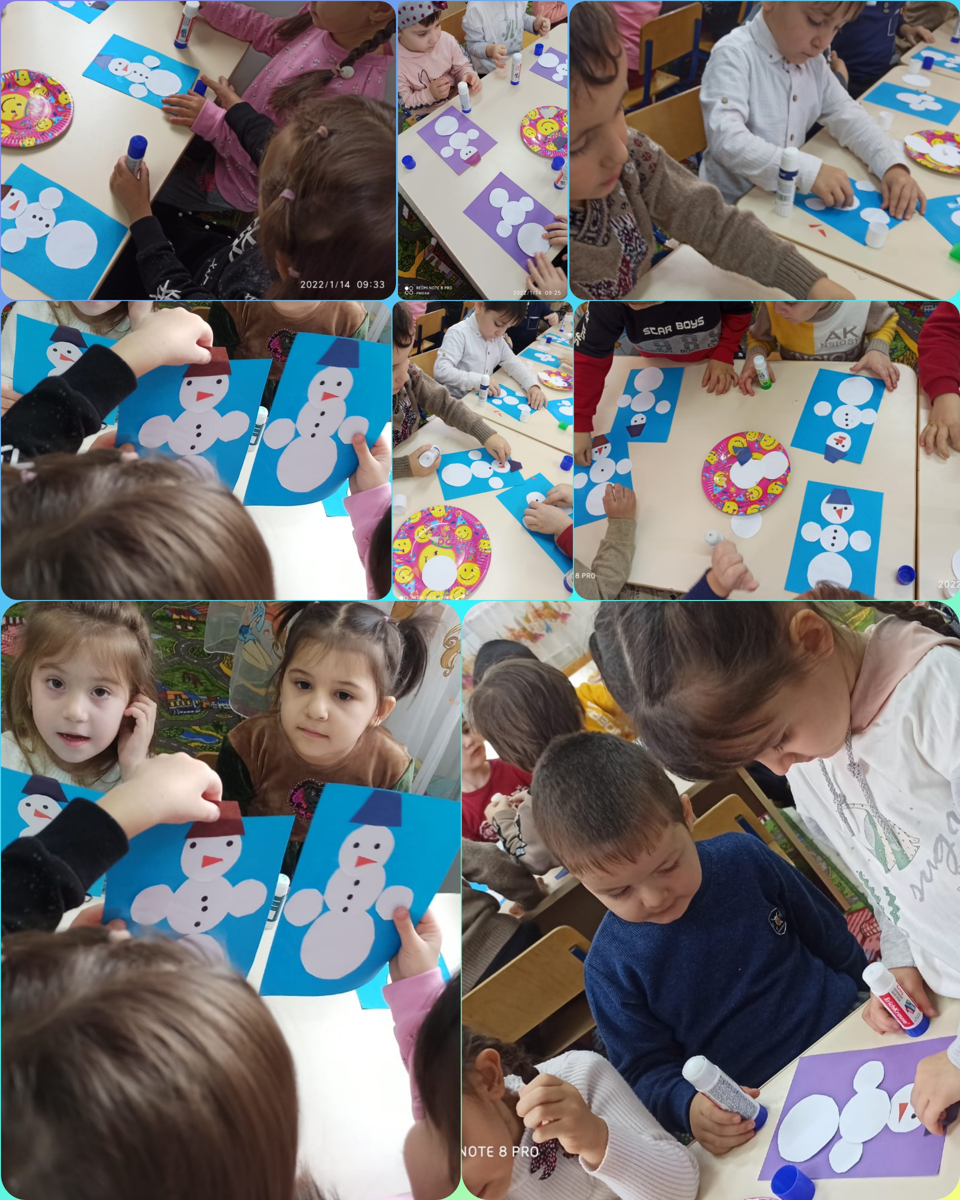 Аппликация в средней группе «Радуга» на тему: «Снеговик»