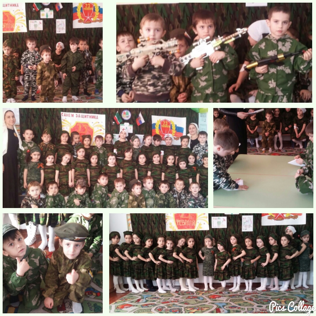 Как итоговое мероприятие тематической недели "День Защитника Отечества", 22 февраля в саду прошло военно-спортивное развлечение «Школа молодого бойца», которое подготовили и провели воспитатели Сусуркаева Аминат Мухамедовна, Темирбулатова Хава Султановна и музыкальный руководитель Дукуева Марьям Магомедовна. Дети читали стихи, пели песни, танцевали, проявляли ловкость и мужество. Праздник проходил в форме игры и состоял из различных эстафет.