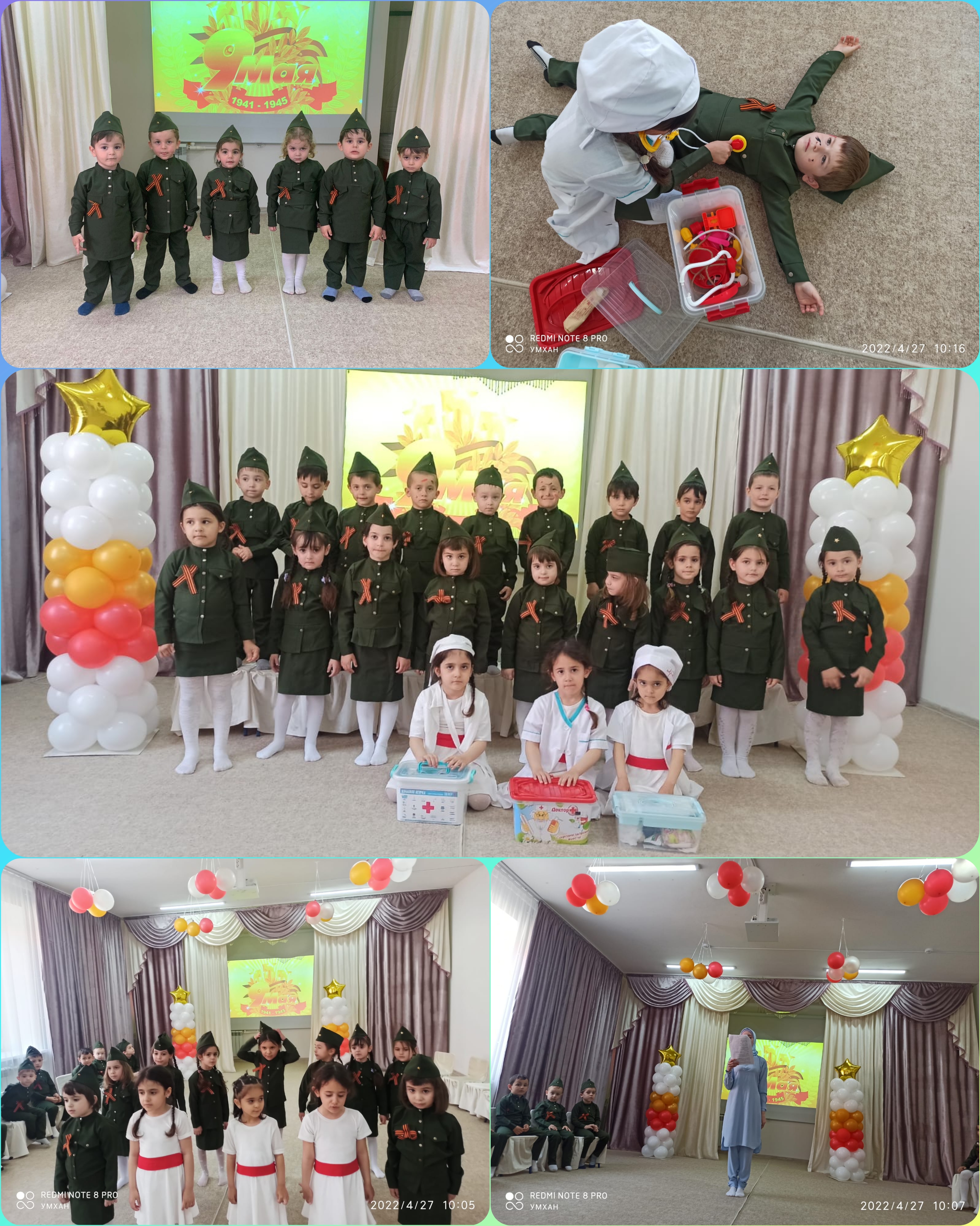 05.05.2022Победы навсегда останется одним из самых светлых праздников нашего народа. Вместе с нами его всегда будут праздновать миллионы людей во всём мире, кто превыше всего ценит свободу и независимость. Ведь патриотическое чувство не возникает само по себе. Это результат длительного, целенаправленного воспитательного воздействия на человека, начиная с самого детства. В связи с этим проблема нравственно–патриотического воспитания детей дошкольного возраста становится одной из актуальных. Нельзя быть патриотом, не чувствуя личной связи с Родиной, не зная, как любили, берегли и защищали ее наши предки, наши отцы и деды. В связи с этим знаменательным днем, в нашем дошкольном учреждении, было проведено праздничное мероприятие посвященное Великой Отечественной Войне, целью которого было расширить знания детей о Великой Отечественной войне, её героях, о воинах интернационалистах, формировать чувство патриотизма, любовь к Родине. Воспитатели рассказывали о том, как нелегко досталась нашей стране эта Великая Победа, читали с детьми стихи, пели военные песни. Мальчики показали свою силу и выдержку в игре «Перитягивание каната». В небольшом, но достаточно веселом соревновании под названием «Прыжки в мешке», приняли участие не только мальчики, но и девочки, где продемонстрировали свою ловкость и скорость. А также соревновались в эстафетах «Военный врач» (перевязывание раненного) «Санитарки», «Марш-бросок». Воспитатели подготовили презентацию для ребят, познакомили с воинами-интернационалистами. Очень надеемся, что наши воспитанники с уважением будут относиться к ветеранам, не забудут, какой тяжелой и долгожданной была Победа!