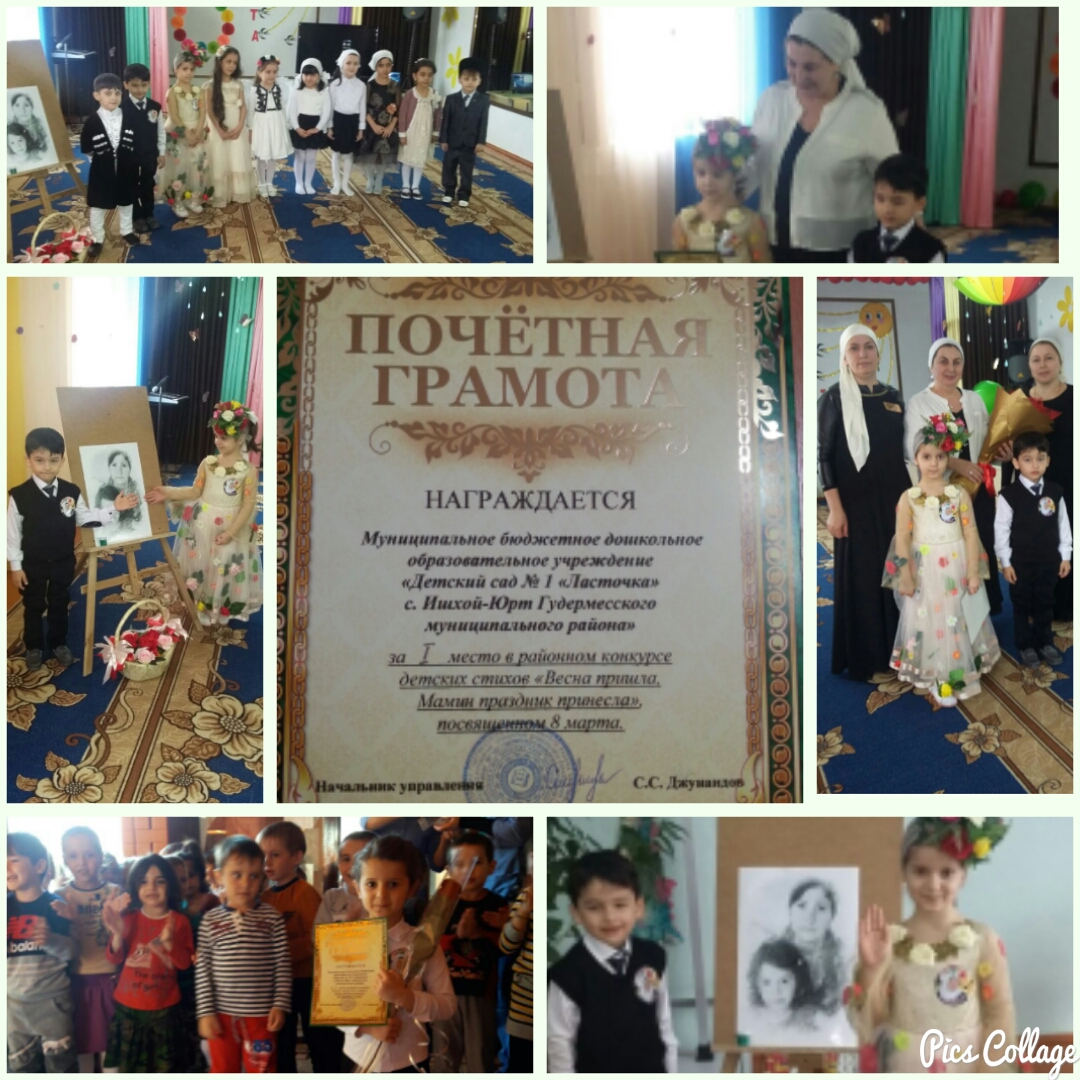 В преддверии самого тёплого, нежного и красивого праздника, в МБДОУ «Детский сад «Седарчий» был организован районный конкурс стихов «Весна пришла, Мамин праздник принесла!», в котором приняли участие воспитанники дошкольных возрастных групп из шести дошкольных образовательных учреждений Гудермесского муниципального района. Из числа участвующих, было наше дошкольное учреждение, МБДОУ «Детский сад № 1 «Ласточка», которое представляли воспитанники старшей группы «Радуга» Кадырова Зарган и Макаев Абдула. А подготавливали к данному конкурсу и сопровождали наших ребятишек, старший воспитатель Османова Зухра Абубакаровна и музыкальный руководитель Дукуева Марьям Магомедовна. Целью данного конкурса являлось формирование эмоционального отношения к литературным произведениям, сформировать интерес к поэзии, помогать выразительно и с естественными интонациями читать стихи, способствовать привитию любви и уважение к маме, бабушке и сестре. Жюри конкурса оценивало стихотворения по следующим критериям оценок: