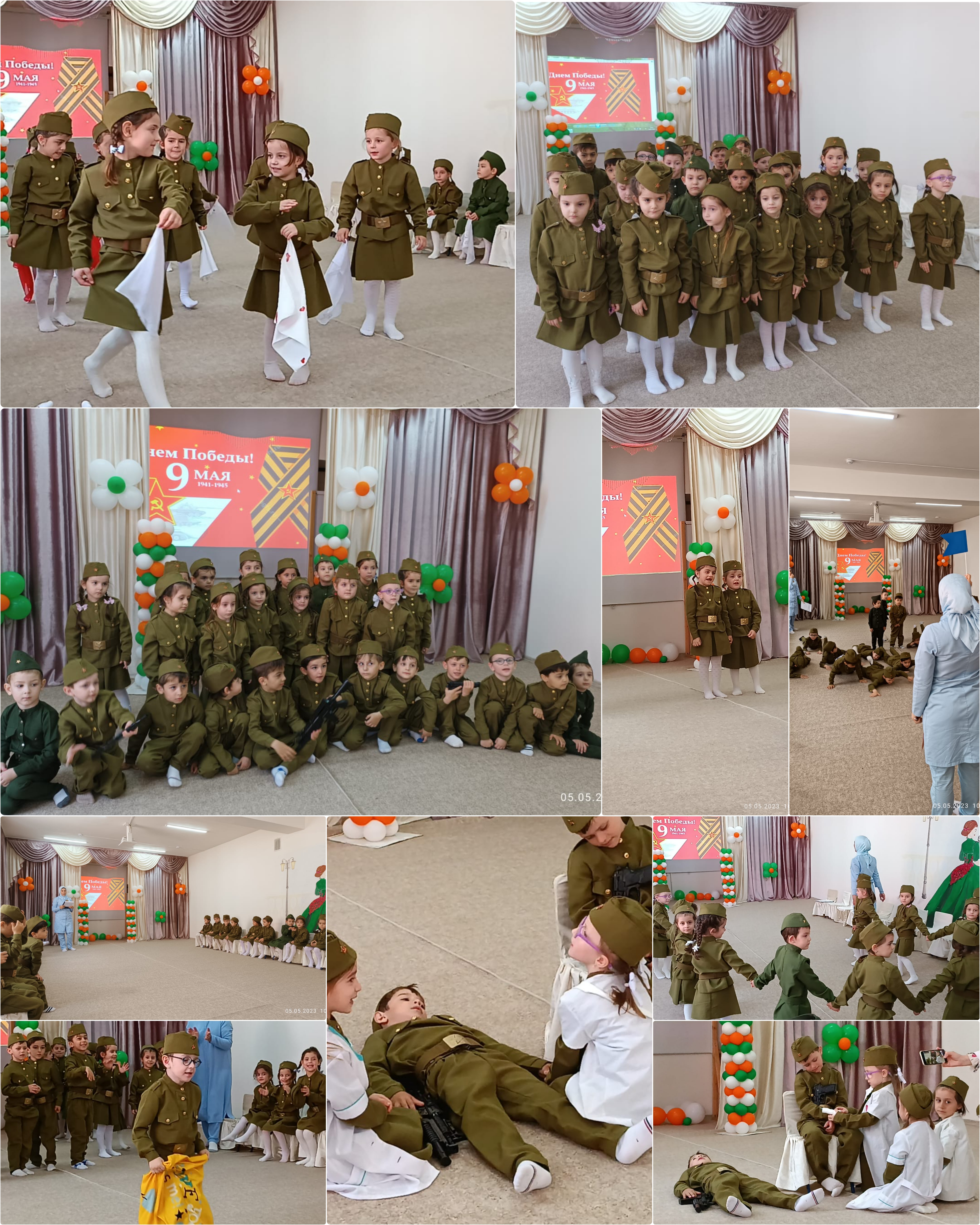 04.05.2023Победы навсегда останется одним из самых светлых праздников нашего народа. Вместе с нами его всегда будут праздновать миллионы людей во всём мире, кто превыше всего ценит свободу и независимость. Ведь патриотическое чувство не возникает само по себе. Это результат длительного, целенаправленного воспитательного воздействия на человека, начиная с самого детства. В связи с этим проблема нравственно–патриотического воспитания детей дошкольного возраста становится одной из актуальных. Нельзя быть патриотом, не чувствуя личной связи с Родиной, не зная, как любили, берегли и защищали ее наши предки, наши отцы и деды. В связи с этим знаменательным днем, в нашем дошкольном учреждении, было проведено праздничное мероприятие посвященное Великой Отечественной Войне, целью которого было расширить знания детей о Великой Отечественной войне, её героях, о воинах интернационалистах, формировать чувство патриотизма, любовь к Родине. Воспитатели рассказывали о том, как нелегко досталась нашей стране эта Великая Победа, читали с детьми стихи, пели военные песни. Мальчики показали свою силу и выдержку в игре «Перитягивание каната». В небольшом, но достаточно веселом соревновании под названием «Прыжки в мешке», приняли участие не только мальчики, но и девочки, где продемонстрировали свою ловкость и скорость. А также соревновались в эстафетах «Военный врач» (перевязывание раненного) «Санитарки», «Марш-бросок». Воспитатели подготовили презентацию для ребят, познакомили с воинами-интернационалистами. Очень надеемся, что наши воспитанники с уважением будут относиться к ветеранам, не забудут, какой тяжелой и долгожданной была Победа!