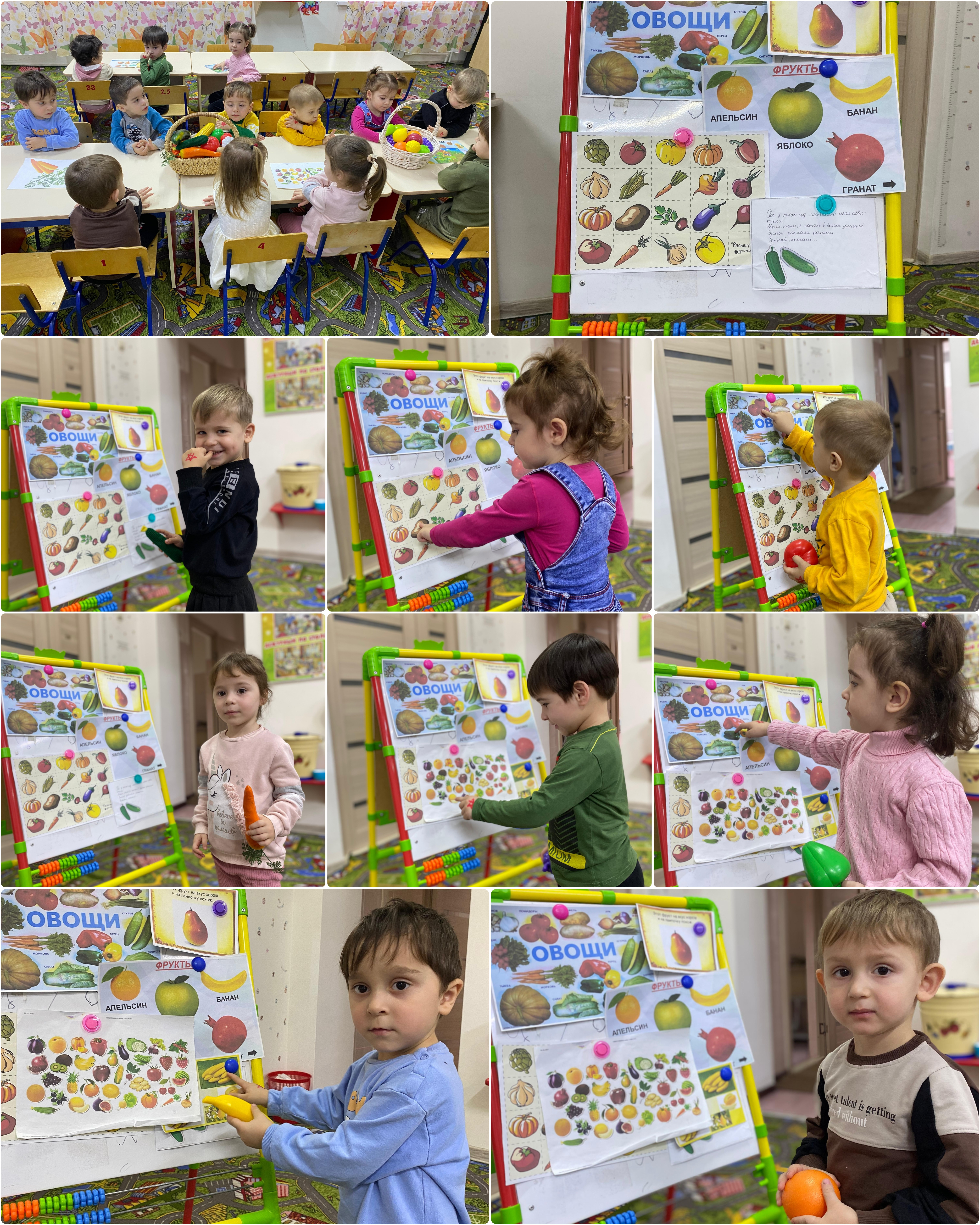 Во время занятий дети знакомятся с названиями овощей и фруктов, учатся их различать по форме, цвету и размеру. Они узнают, какие витамины содержатся в каждом из них, и как эти витамины помогают расти сильными и здоровыми. Занимательные игры и загадки делают процесс обучения увлекательным и запоминающимся.