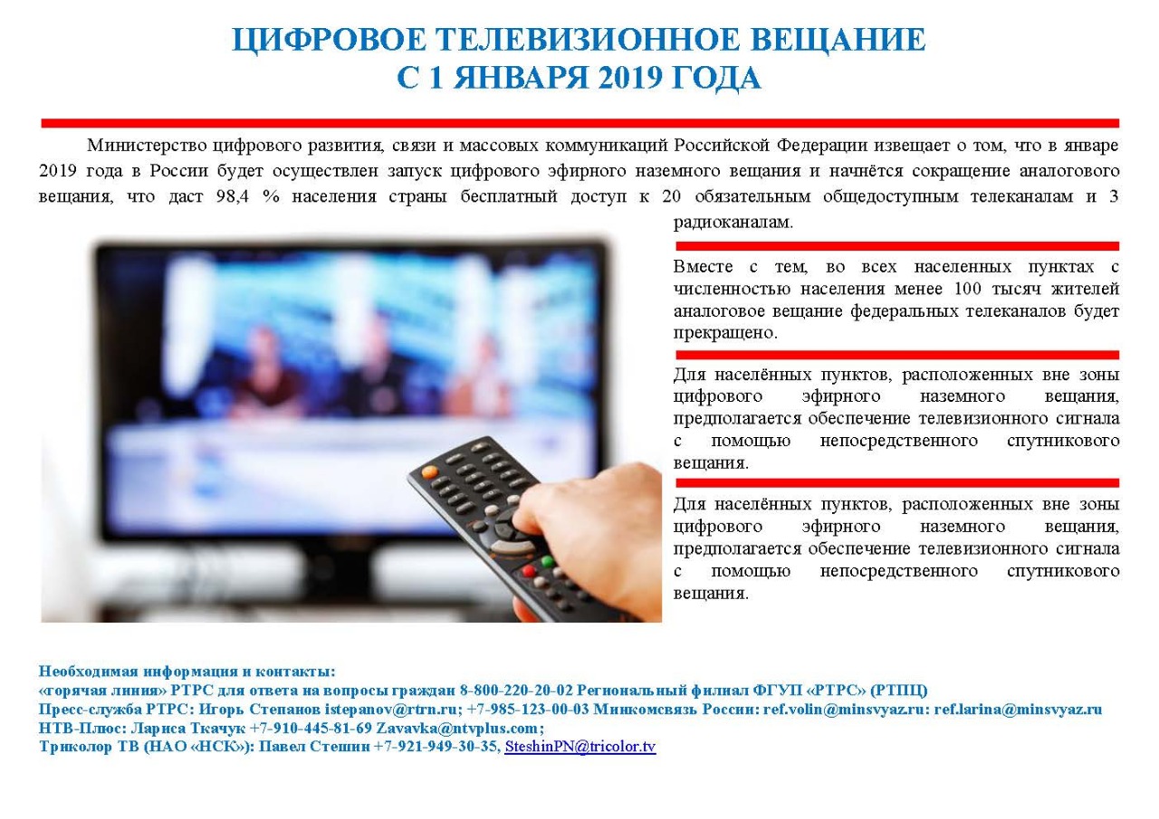 25.12.2018Переход на цифровое телевидение происходит или уже произошел во многих странах мира. Россия тоже участвует в этом процессе, который, по заявлениям властей, должен завершиться 1 января 2019 года. В соответствии с федеральной программой на территории страны было построено около 10 тысяч ретрансляторов, которые должны принести цифровое телевидение «в каждый дом».